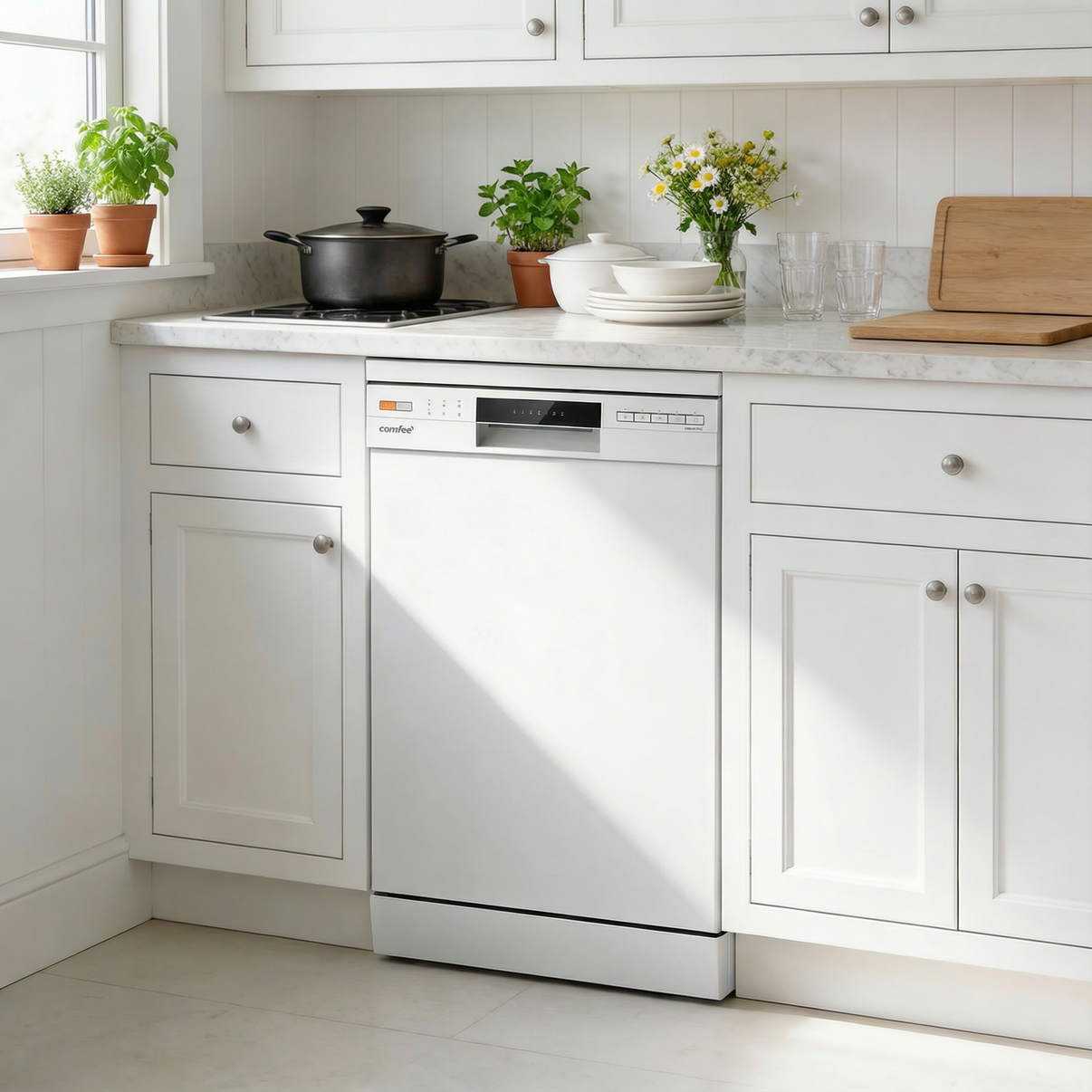 40cm White Freestanding Dishwasher with 10 Place Settings & 6 Washing Programs